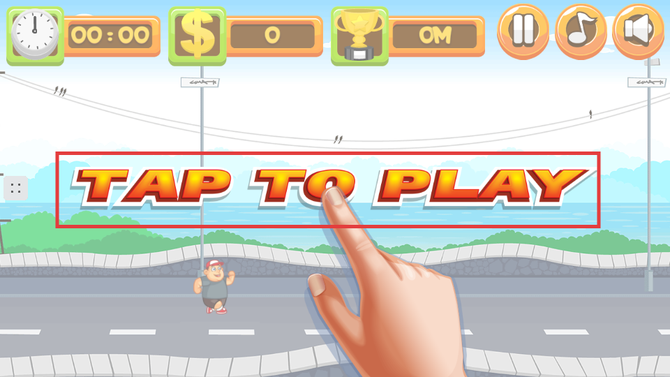 1、进入游戏界面,点击【TAP-TO-PLAY】区域,即可操控角色开启滨海跑酷冒险。