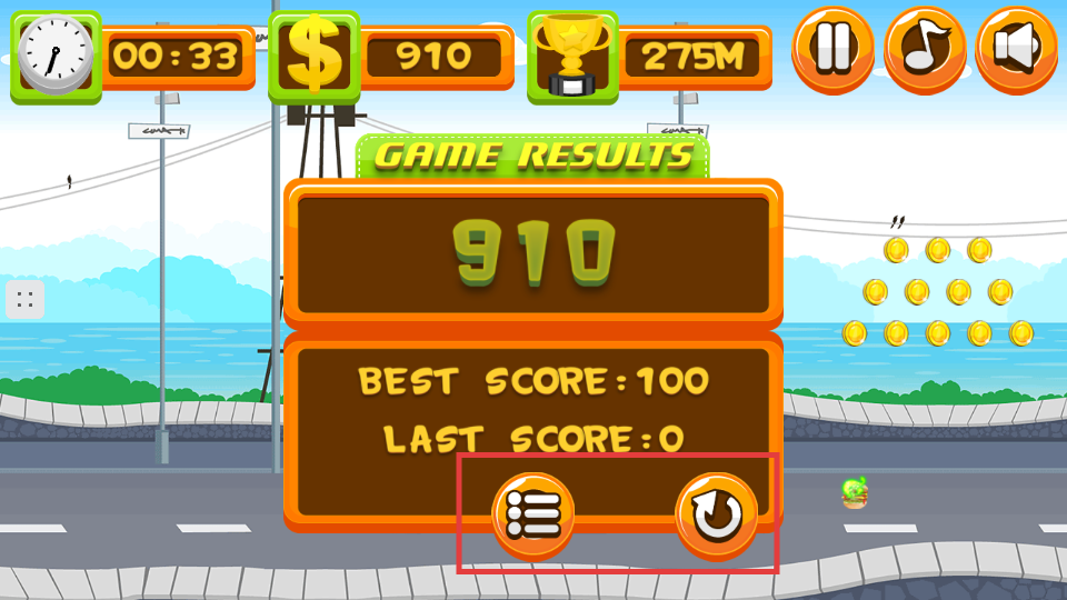 4、游戏结束后,点击右侧【重玩】按钮可重新挑战,左侧菜单可查看游戏数据或设置。