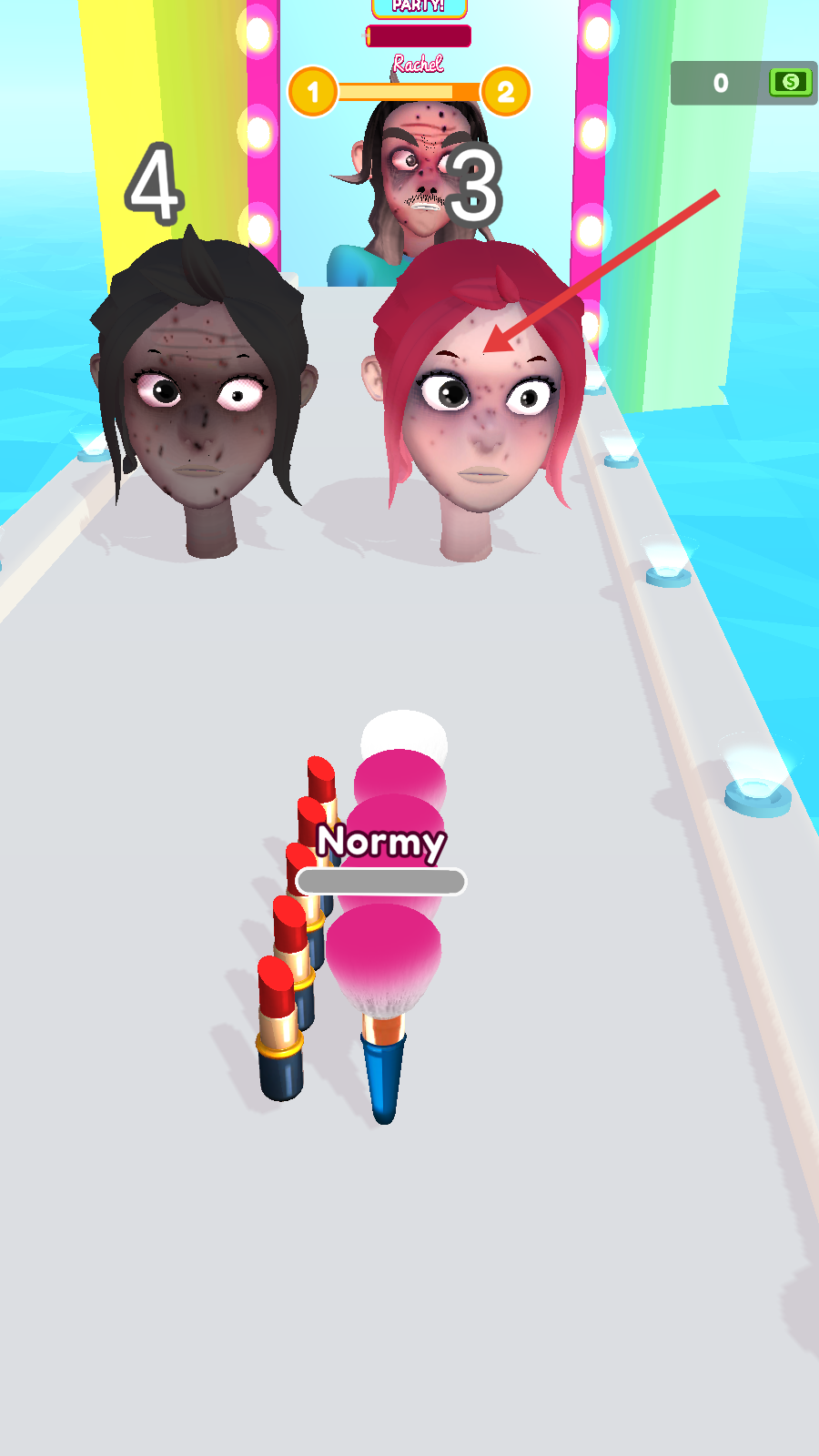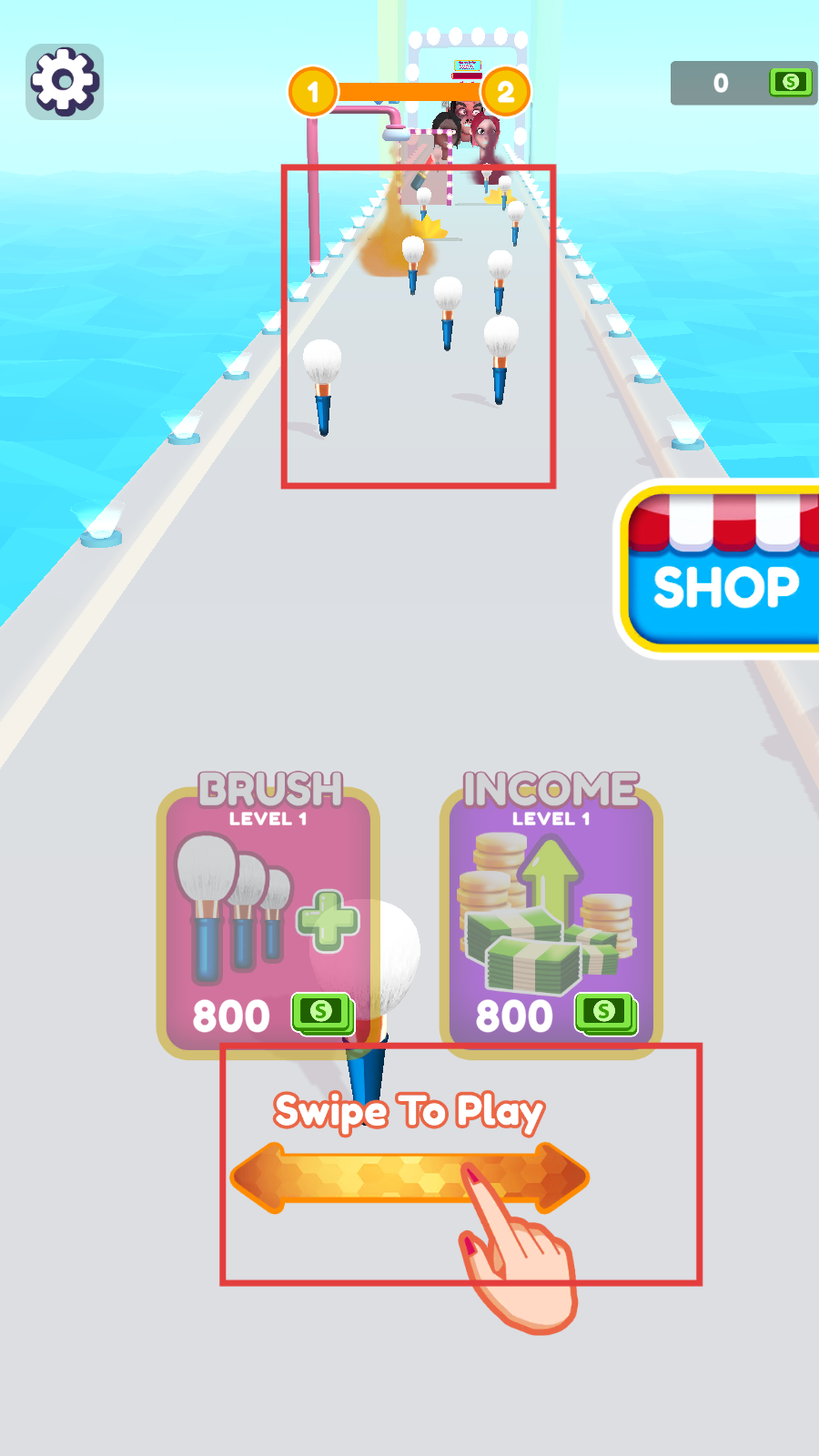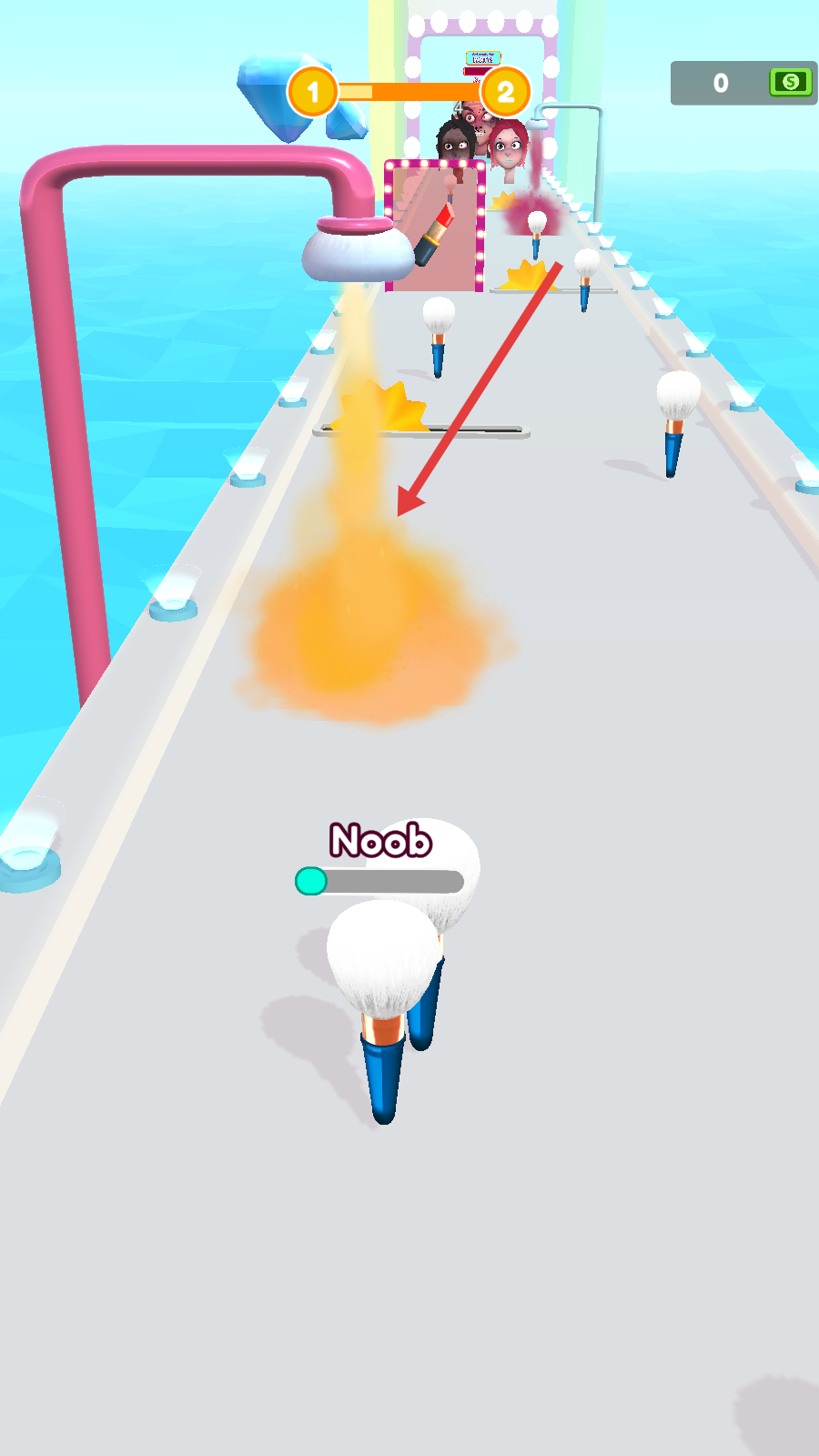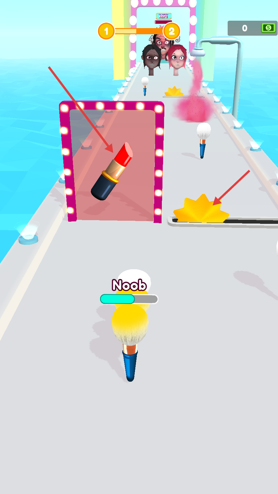 1、根据提示【SwipeToPlay】,滑动屏幕开始游戏,操控化妆刷在跑道上移动。