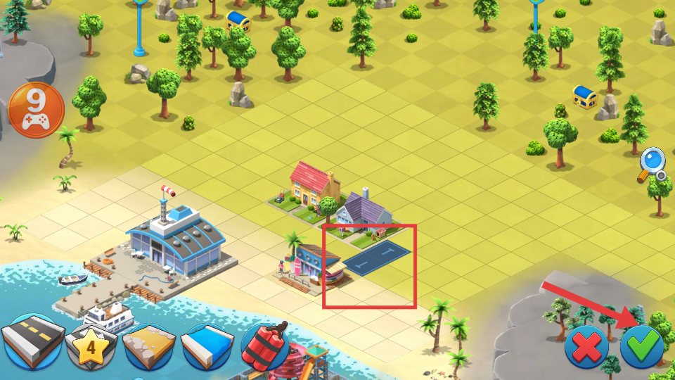 4、选择道路放置位置,点击确认按钮,完成道路部署,优化岛屿布局。