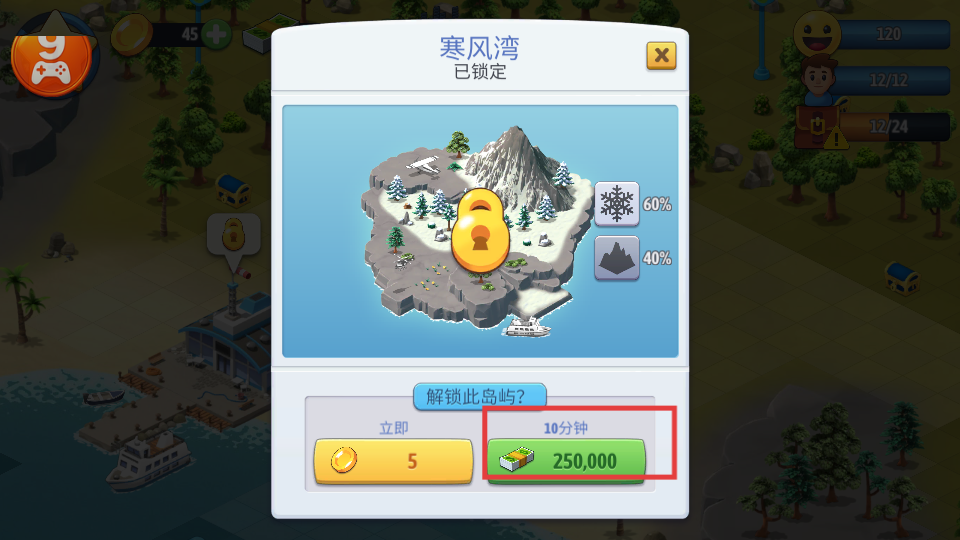 2、解锁寒风湾岛屿,开启新岛屿的探索和建设。