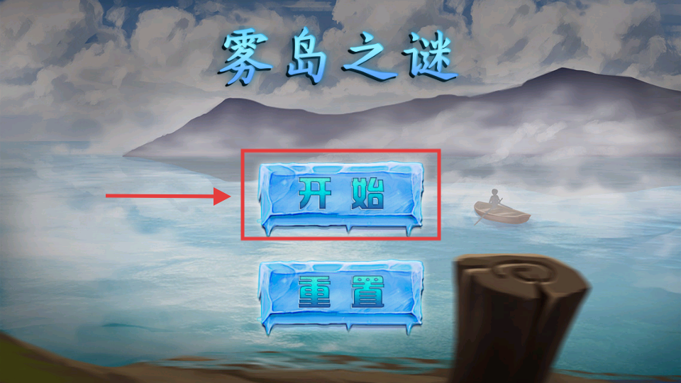 1、游戏开始时点击【开始】按钮,进入雾岛解谜场景,开启儿童失踪案的调查之旅。