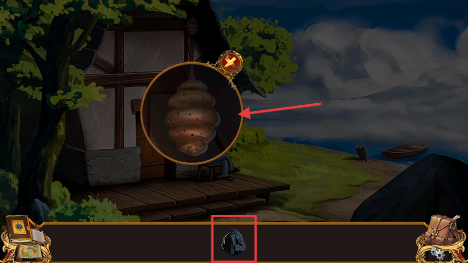 4、点击【蜂窝】观察细节,下方【石头】可作道具,尝试用石头互动蜂窝,获取新线索或道具。