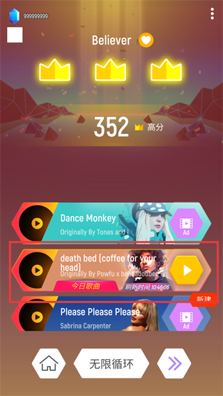 1、选择歌曲,点击播放按钮进入游戏,开启音乐节奏挑战之旅。