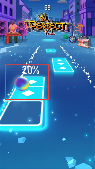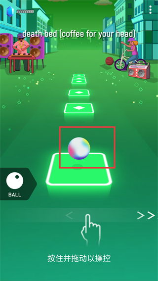 2.听听音乐节拍并使用你的反应来向左或向右拖动球以引导球从瓷砖到瓷砖。
