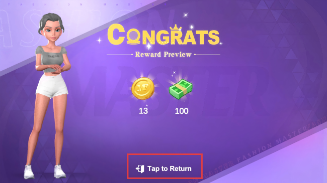 4、成功完成关卡后,点击【TaptoReturn】按钮,返回游戏主界面或继续后续游戏内容。
