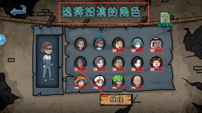 2、选择扮演的角色,点击【继续】,进入游戏。