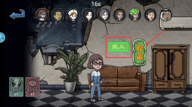 3、查看场景提示,在【无人】区域,寻找合适的躲藏点,点击【躲藏】。