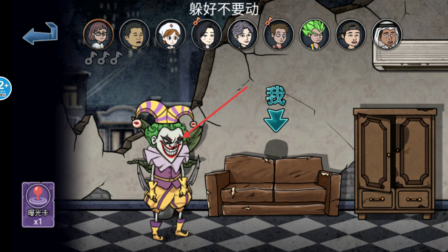 4、躲藏好后,保持不动,躲避小丑的搜寻。