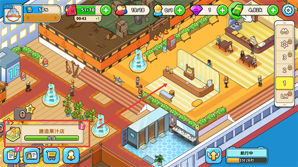 4、等待果汁店建造进度完成,完成后该设施投入使用,可接待顾客并增加消费收入。