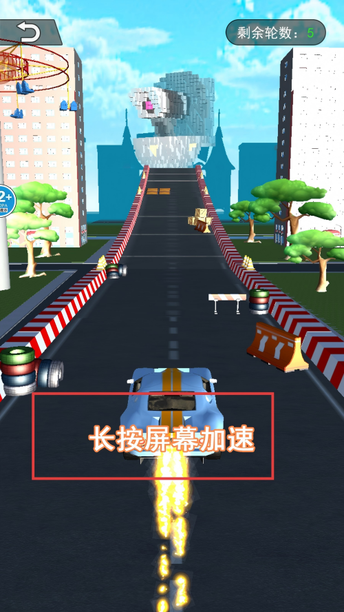 2、长按屏幕,使汽车加速前进。