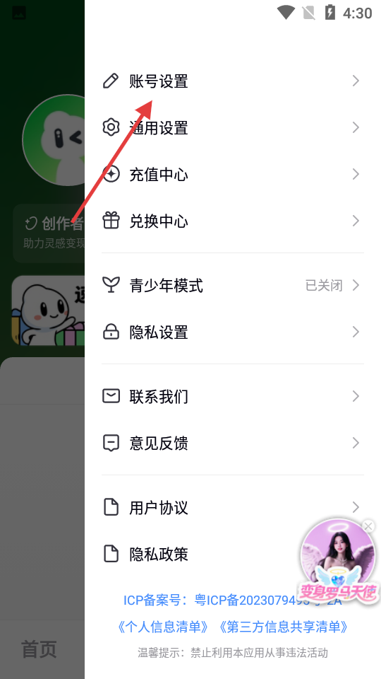 2、在功能列表中点击【账号设置】,进入账号设置页面。