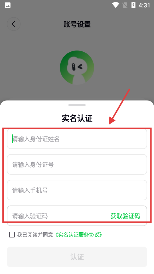 4、依次输入身份证姓名、身份证号、手机号、验证码,完成实名认证操作。
