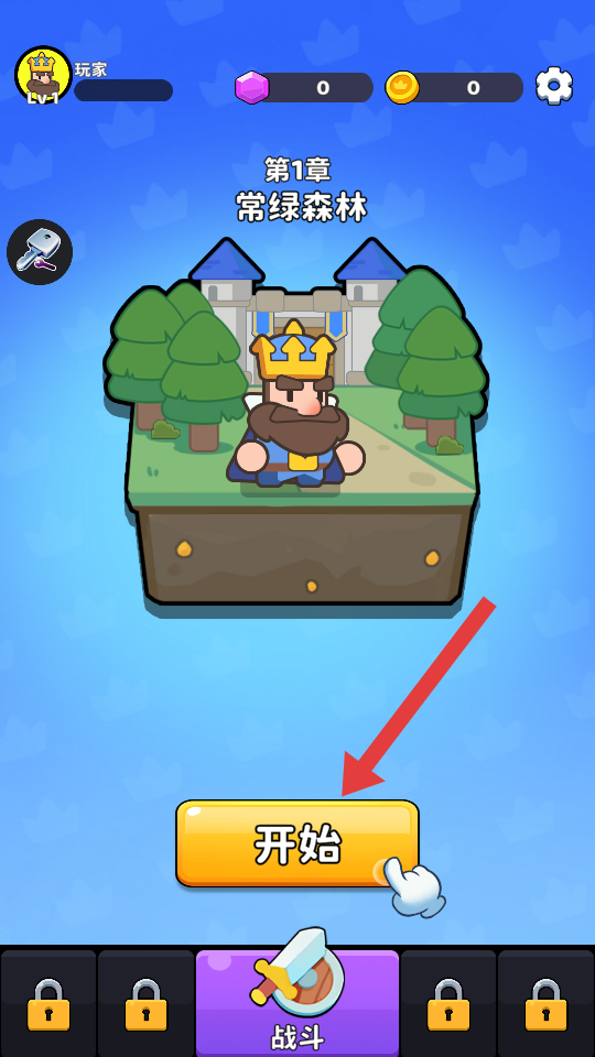 1、在游戏初始界面,点击【开始】按钮,进入【第1章-常绿森林】关卡。