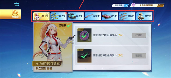2、活动涵盖第1天到第7天,每天有不同奖励。
