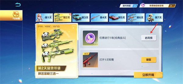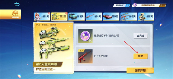 3、在新兵当天界面,完成任务后点击【领取】按钮,可获取不同奖励。