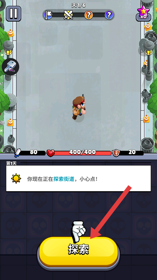 1、进入游戏界面后,点击【探索】,操控角色开始在街道上进行探索。