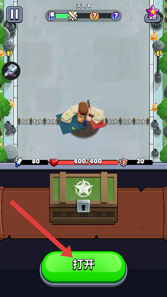 3、打开箱子后,将武器放置背包后,点击【战斗】进入抵御僵尸。