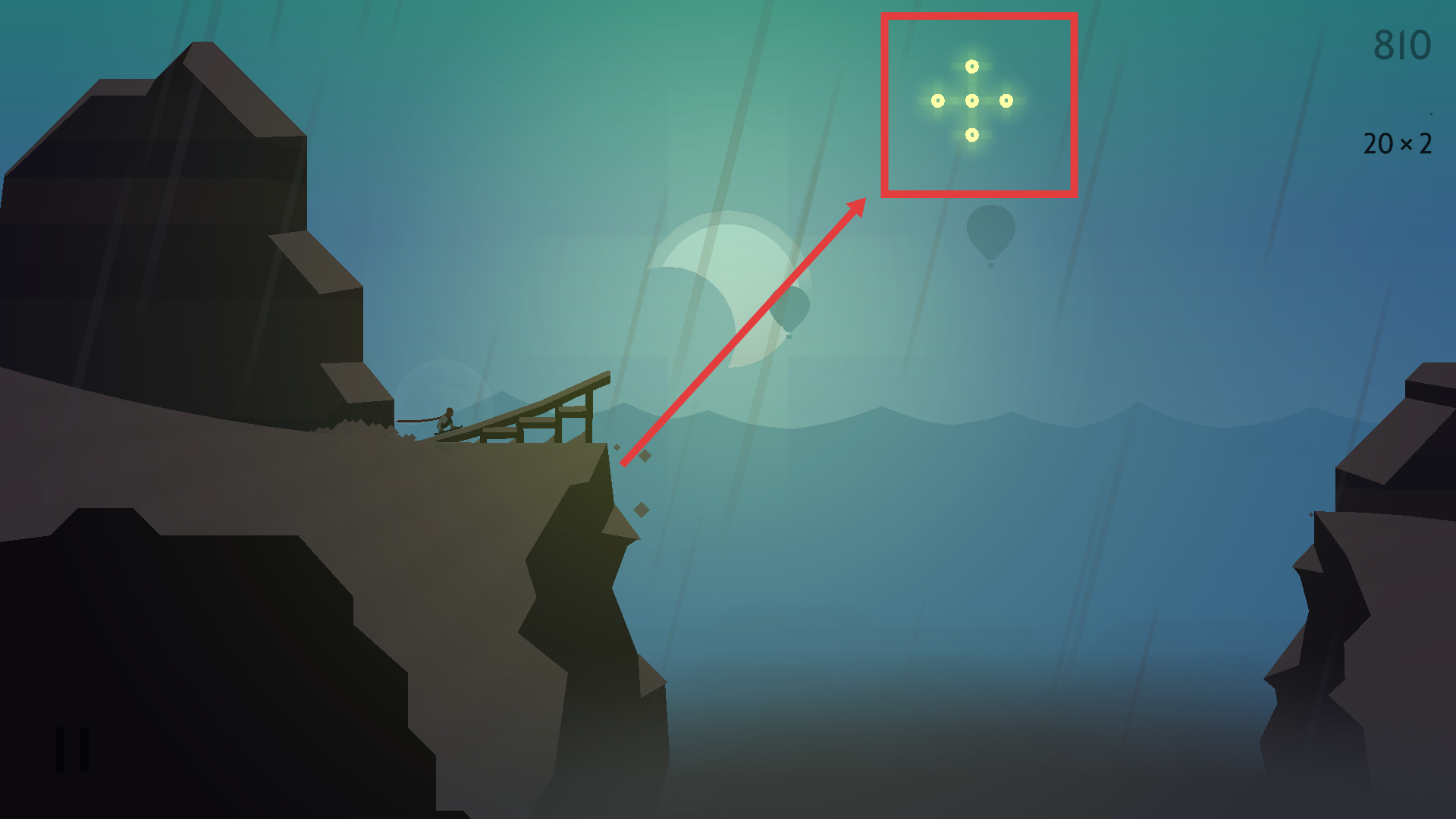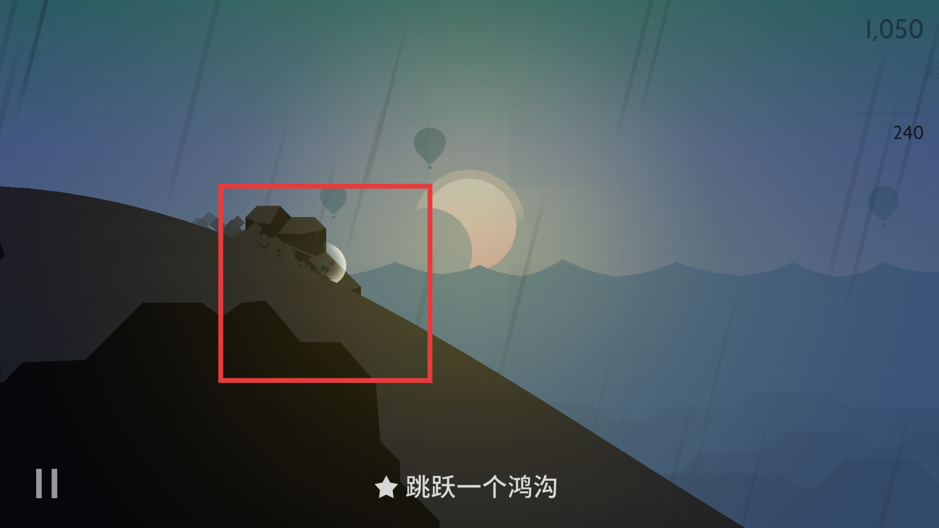 2、滑行途中遇到【鸿沟】时,把握时机点击跳跃。