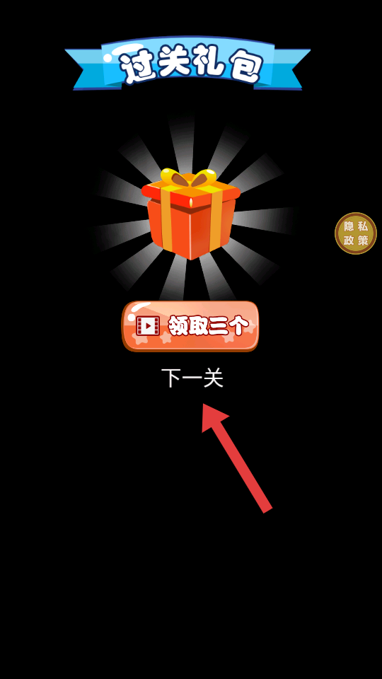 4、成功过关后,出现【过关礼包】,可选择领取奖励或直接点击【下一关】按钮,挑战后续关卡。