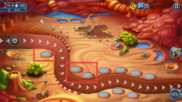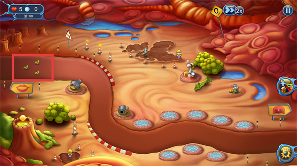 2、在敌人行进路径的标识点位,部署防御塔,占据关键位置拦截入侵单位。