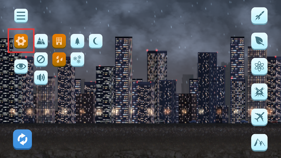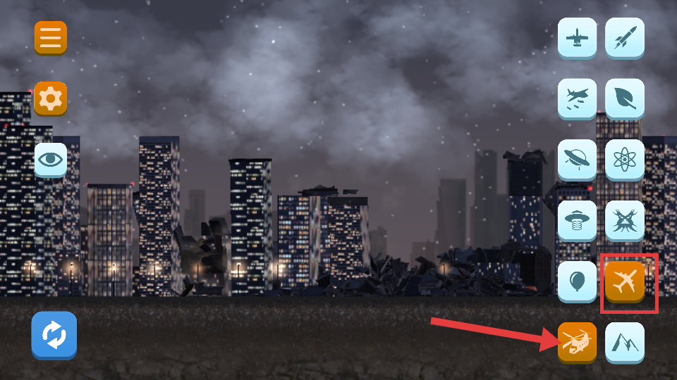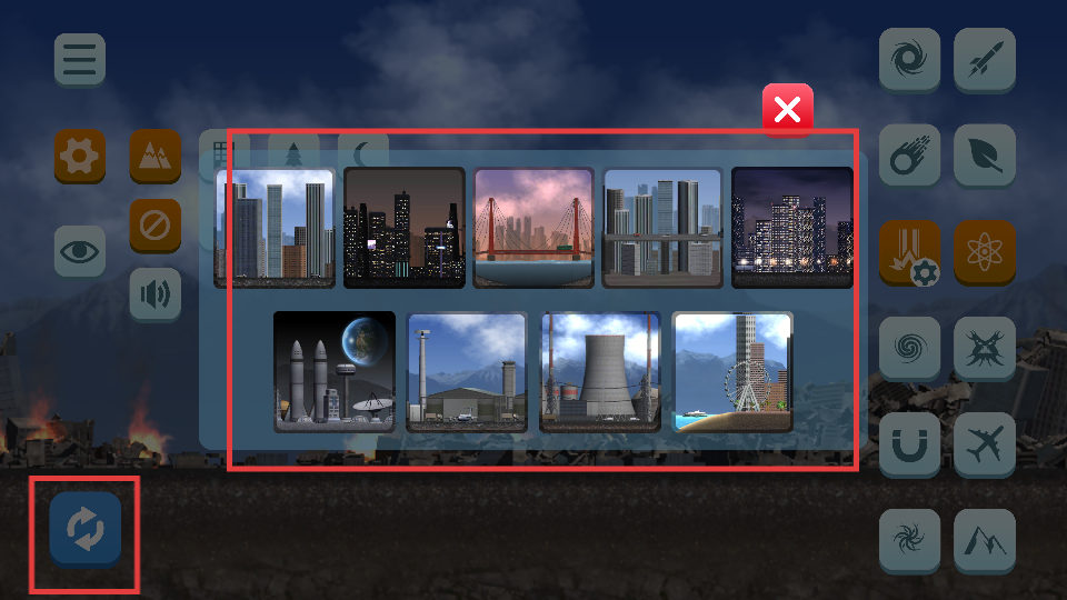 1、点击左下角图标选择场景,更换游戏场景,开启新的破坏挑战。