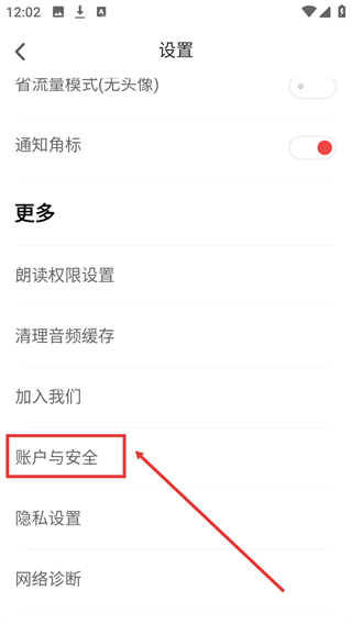 3、进入【设置】页面,点击【账户与安全】选项,可进入账户安全相关设置界面,管理个人信息及账户安全配置。