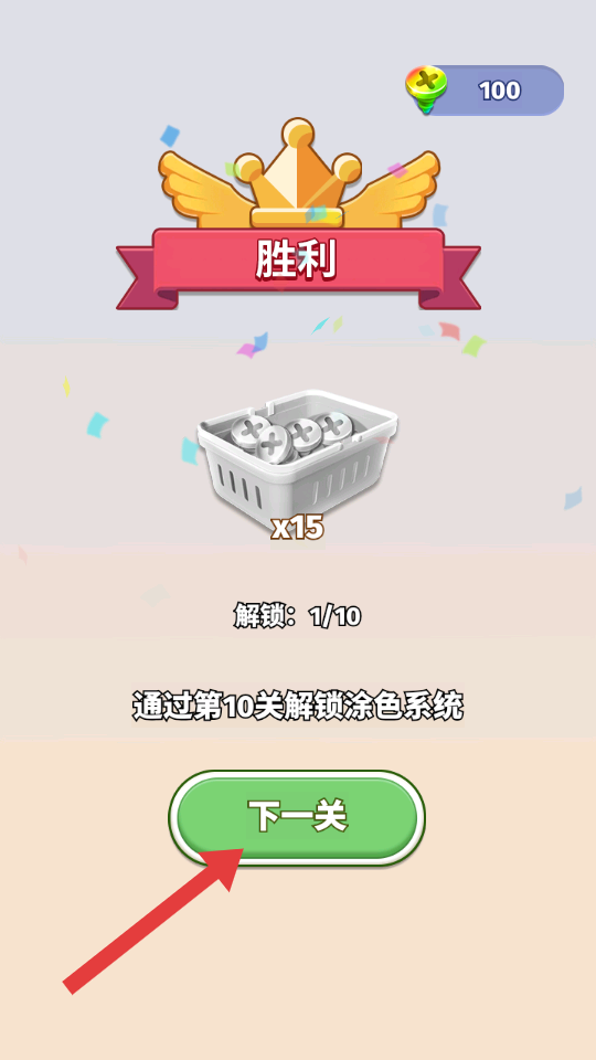 4、成功通关后,点击【下一关】按钮,挑战后续关卡。