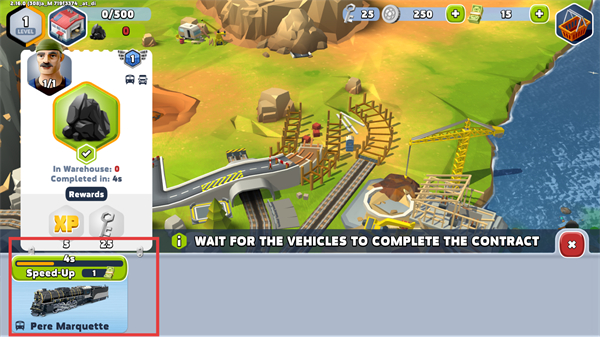 3、资源收集过程中,可使用加速功能(如Speed-Up)加快车辆完成合同的速度,提升资源收集效率。