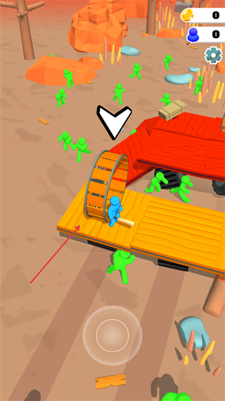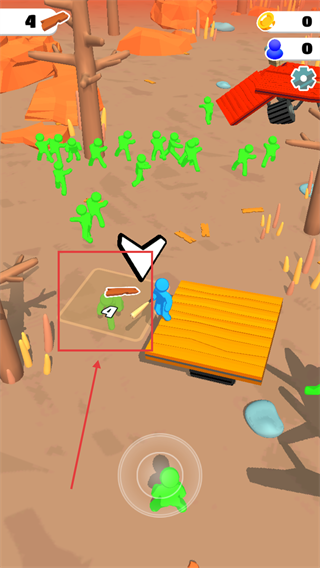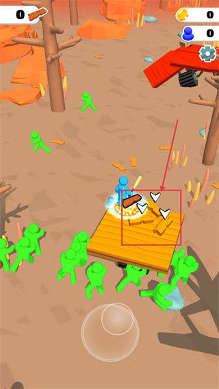 2、发现地面的【木板】资源点,控制蓝色角色移动过去收集,积累足够材料来扩展木筏的面积,提升生存空间。