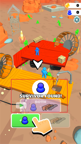 4、遇到幸存者提示时点击【蓝色角色】图标,收留新伙伴,同时获取【武器】奖励,增强团队战斗能力。