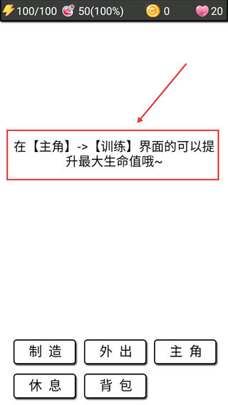 3、进入【主角】界面找到【训练】选项,进行体质训练可提升最大生命值,增强战斗续航能力。
