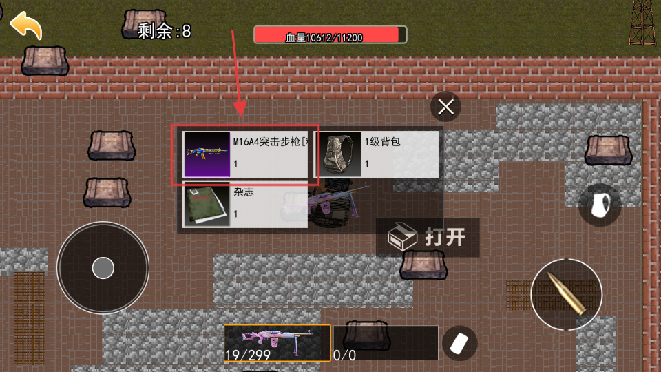 4、击败敌人后开启箱子,获取【M16A4突击步枪】与【1级背包】,提升武器配置与携带能力增强战斗优势。