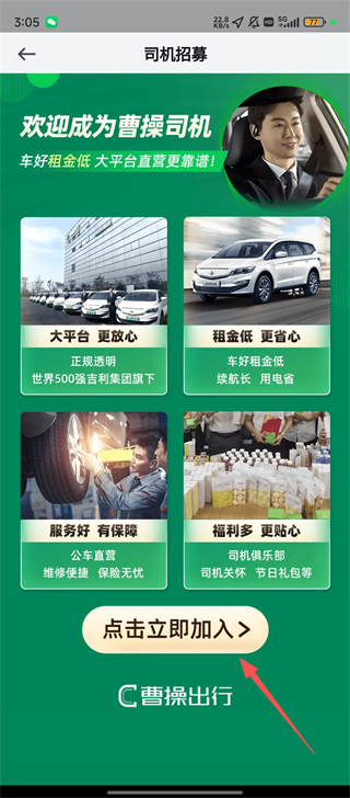 2、在个人功能界面里,找到【司机招募】选项,点击它就能进入司机招募的相关页面啦。