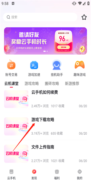 3、下滑找到游戏下载攻略这一个选项,点击进入。