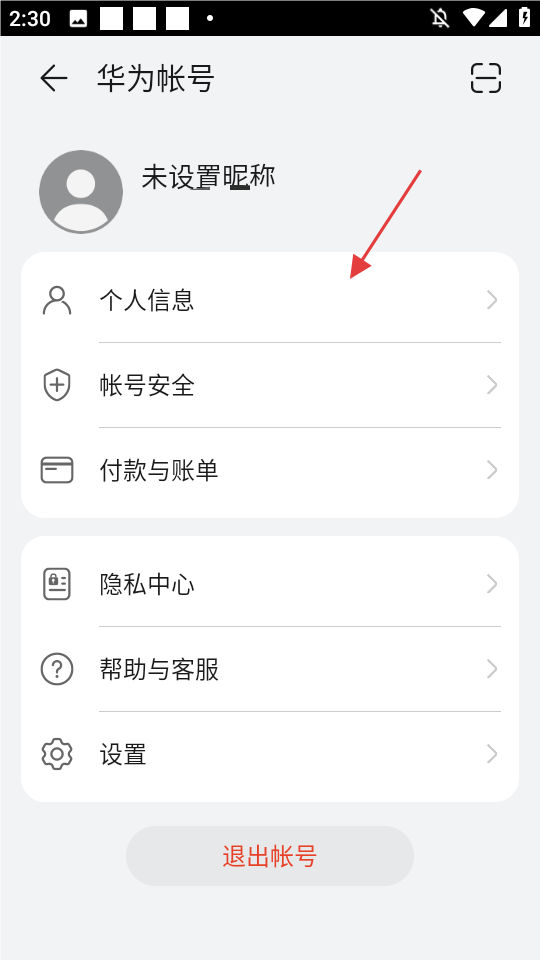 2、进入华为帐号页面,点击【个人信息】,进入个人信息页面。