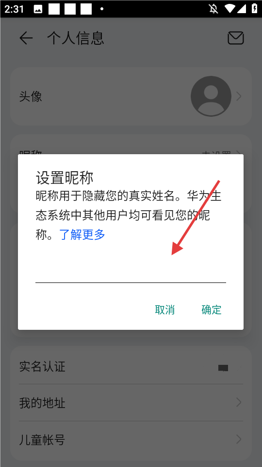 4、在设置昵称弹窗中输入昵称,点击【确定】,完成昵称设置操作。