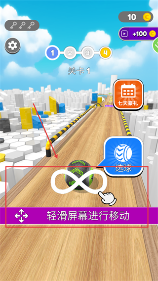 1、进入【关卡1】后,可点击【选球】切换球形机甲,轻滑屏幕控制小球左右移动开始闯关。