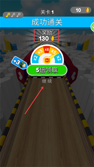 4、通关后可直接点击【继续】进入下一关,或看广告【5倍领取】奖励来获取更多金币升级机甲。