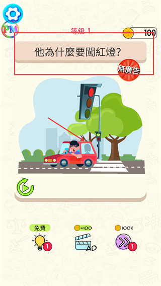 2、在“他為什麼要闖紅燈?”的谜题中,观察场景细节,寻找导致司机闯红灯的特殊原因,这是解谜的关键。