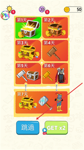 4、在奖励界面,可选择【跳過】广告直接领取奖励,或观看广告获取双倍奖励。
