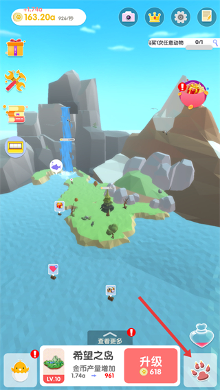 1、点击红色箭头指向的爪印图标,进入【我的伙伴】界面查看拥有的动物伙伴。