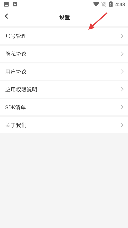 3、在设置页面,点击【账号管理】。