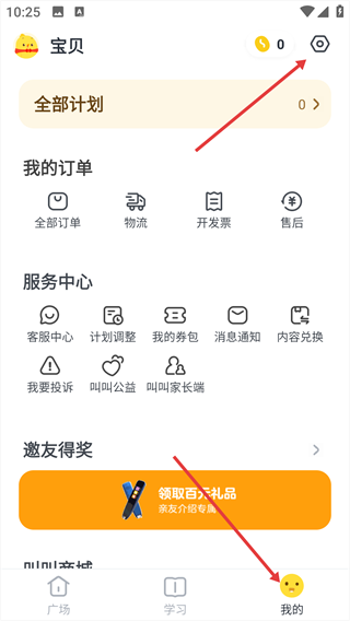 1、打开叫叫学院app进入主页,找到右下角的“我的”。