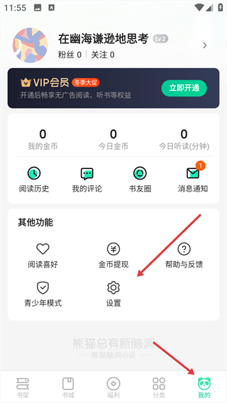 1、打开手机中的熊猫脑洞小说,接着点击右下角的“我的”。