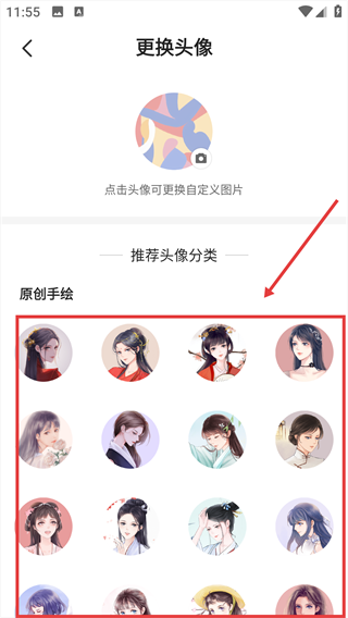 4、在更换头像页面,从推荐头像分类中选择想要的头像,完成头像的更换操作。