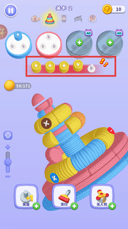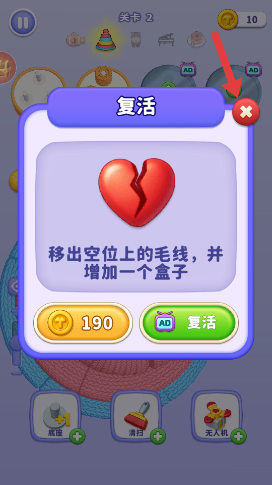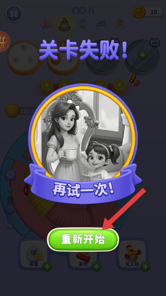4、点击【重新开始】按钮,重新规划毛线堆叠策略,再次尝试挑战关卡。