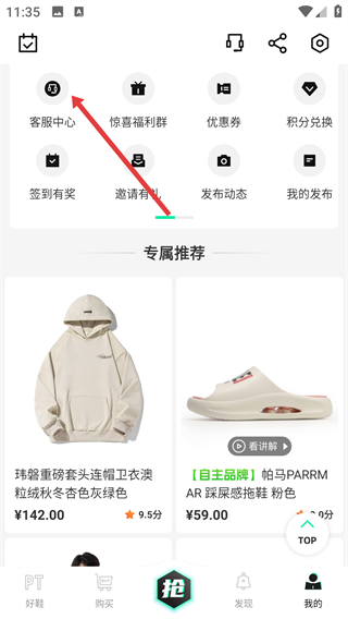 1、打开【莆田好鞋】软件,进入【我的】页面后点击【客服中心】选项。
