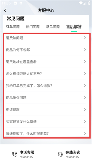 3、在【售后解答】页面,选择对应售后问题选项查看吧。