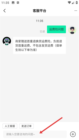 4、接着进入客服平台,在输入框填问题即可咨询售后啦。